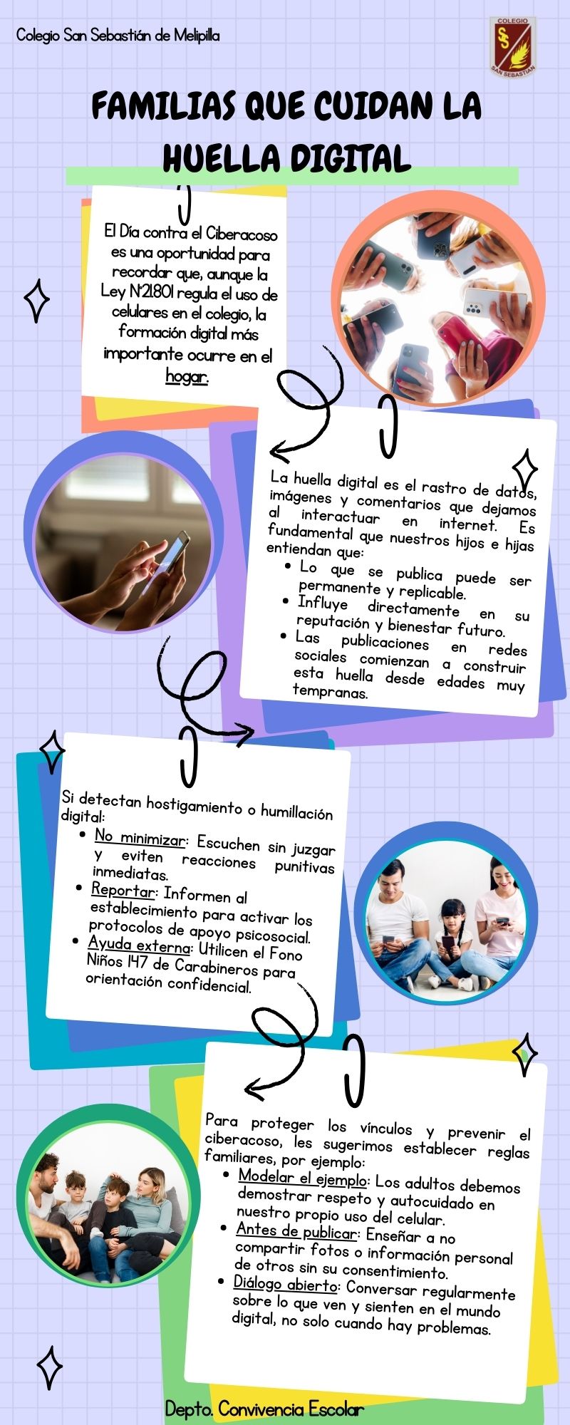 En la era digital, cada comentario, foto o publicación que realizamos en internet deja una huella digital. Por eso, es fundamental que como familias acompañemos y orientemos a nuestros hijos e hijas en el uso responsable de la tecnología.